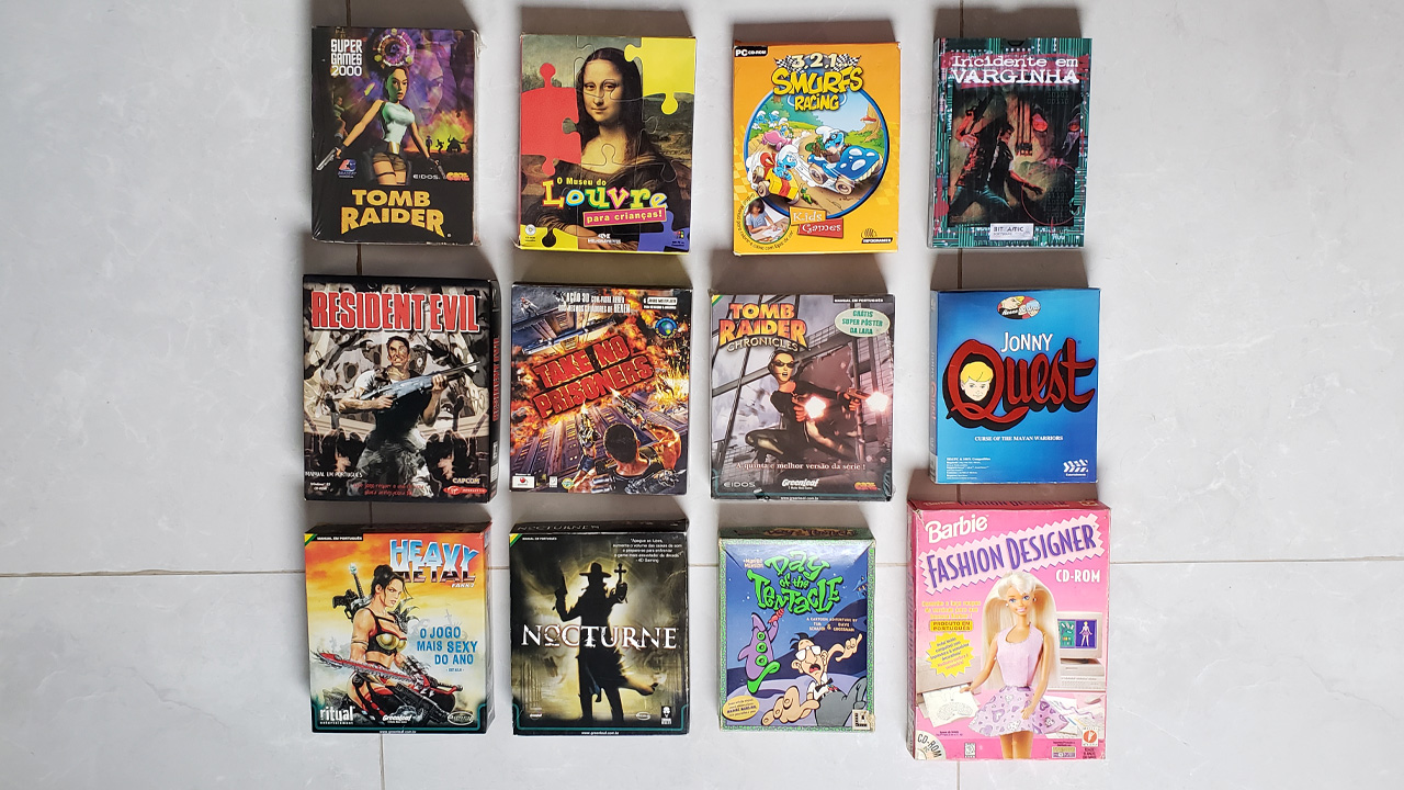 E para trazer algo diferenciado para cá além das fotos e textos individuais, resolvi selecionar 12 jogos brasileiros que adquiri durante esse ano. Para quem não sabe, além do minha preferência em colecionar jogos nas suas versões nacionais, eu também tenho uma paixão pelos jogos brasileiros e, no cenário de jogos de PC tem bastante coisa obscura e rara, dá só uma olhada: