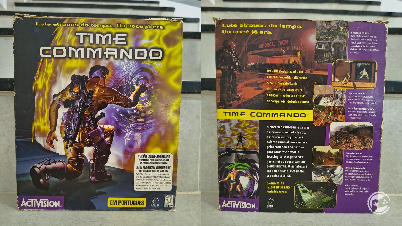 - Time Commando - Por fim, um clássico dos PCs! Aposto que quem teve um computador em casa em meados dos anos 1990, jogou pelo menos a versão de demonstração deste jogo! Apesar de ter sido relativamente popular na época, essa versão na caixa grande não era tão comum e hoje é meio chatinha de encontrar! Para quem não conhece, este é um jogo de ação/aventura de 1996 que envolve viagem no tempo, que ironicamente não resistiu ao tempo e hoje é um jogo meio difícil de jogar, mas ele marcou época!