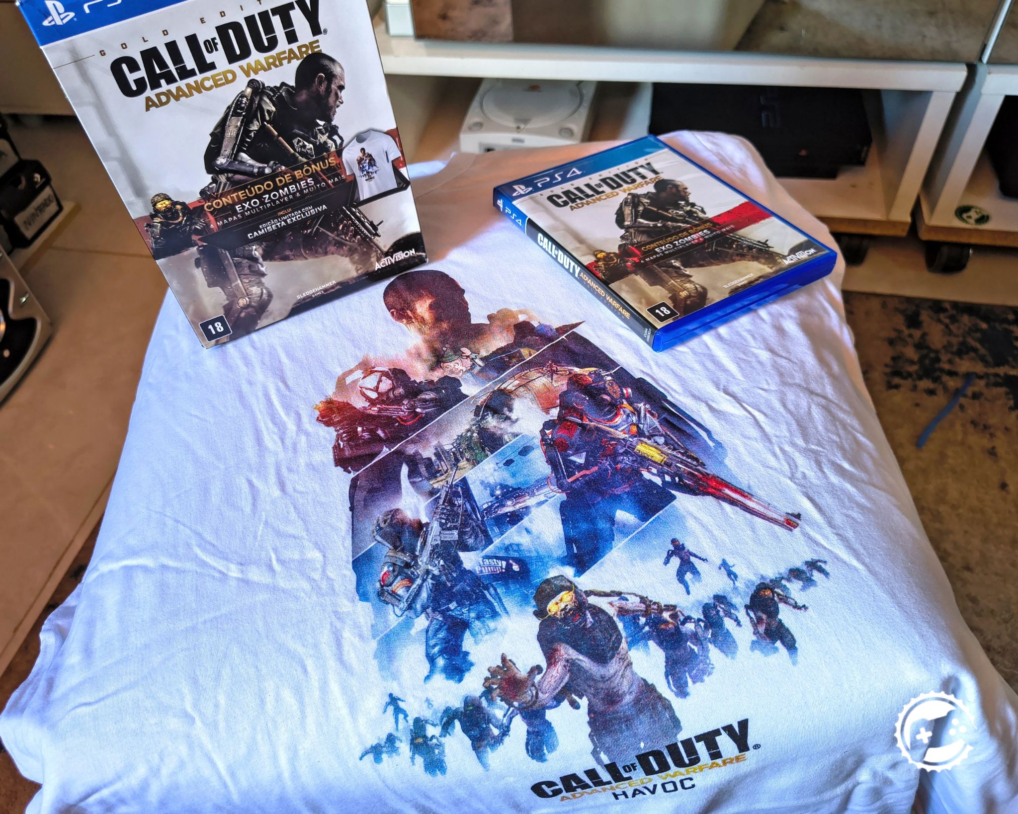 Tirando a camiseta, na caixa vem a edição “Gold” do jogo que contém um conteúdo bônus que são 4 mapas no multiplayer, exo zombies e mais algumas coisas.